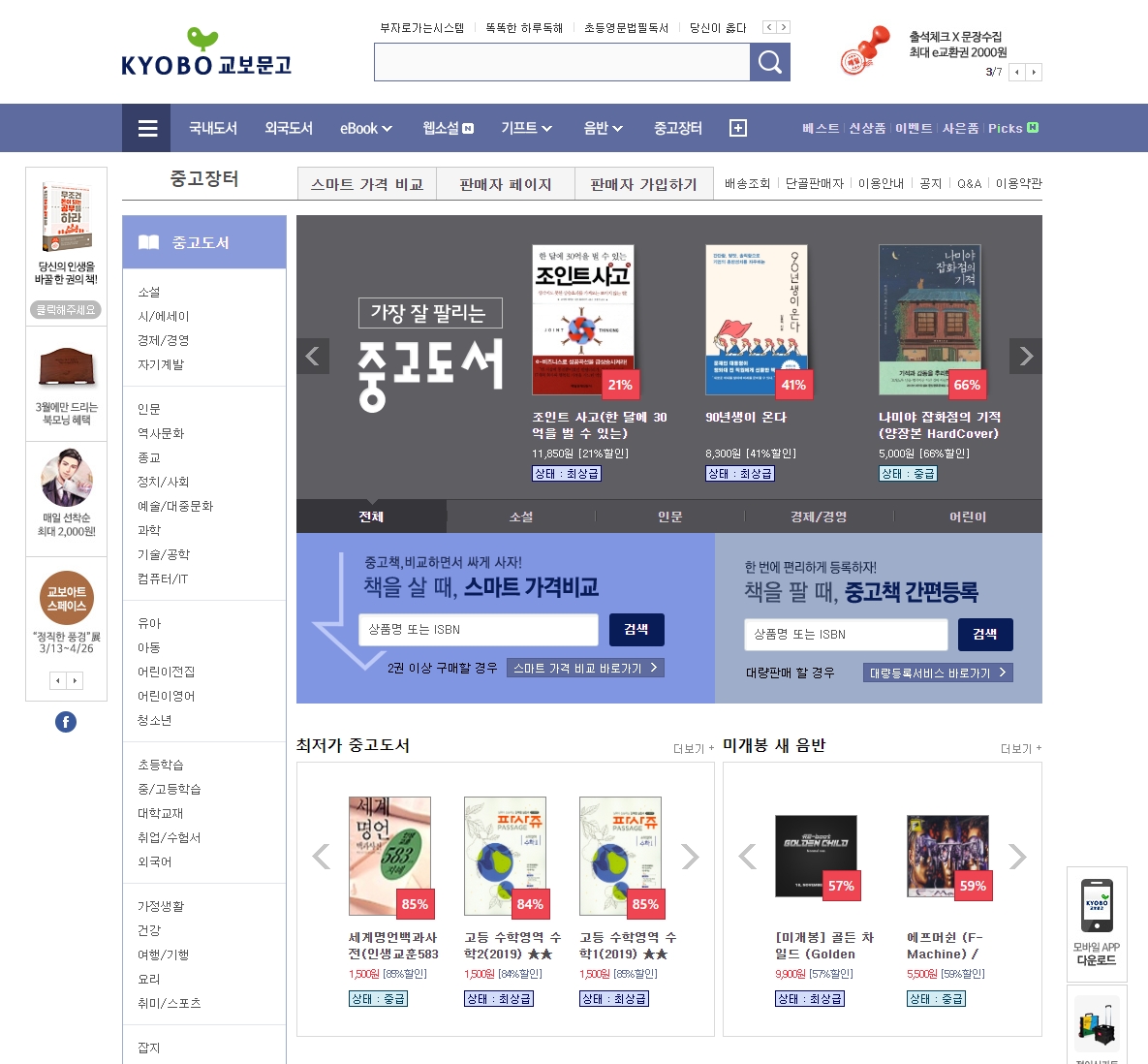 주로 새책을 사거나 e-book을 사기위해 들렀던 교보문고 사이트인데 이번에는 중고책을 검색하기위해 들렀습니다.