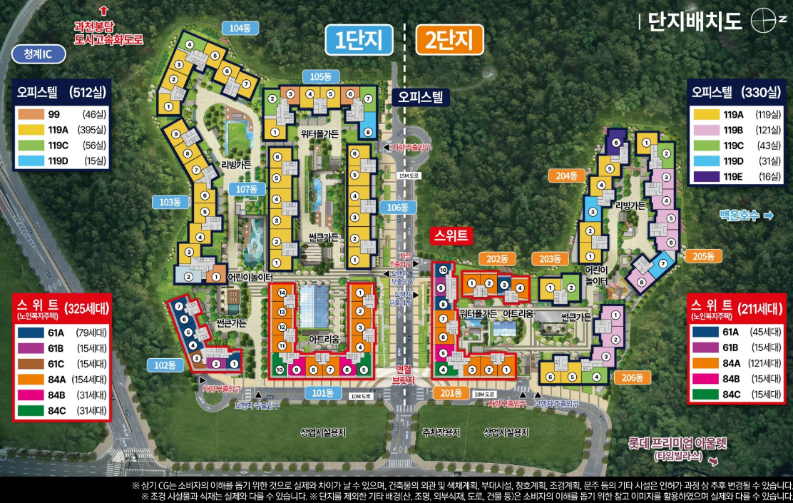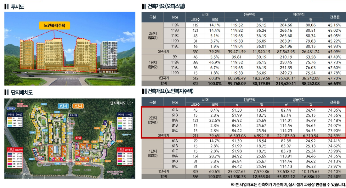 세대수 : 오피스텔 842실, 노인복지주택 536세대 (61타입 / 84타입) 총 1,378세대